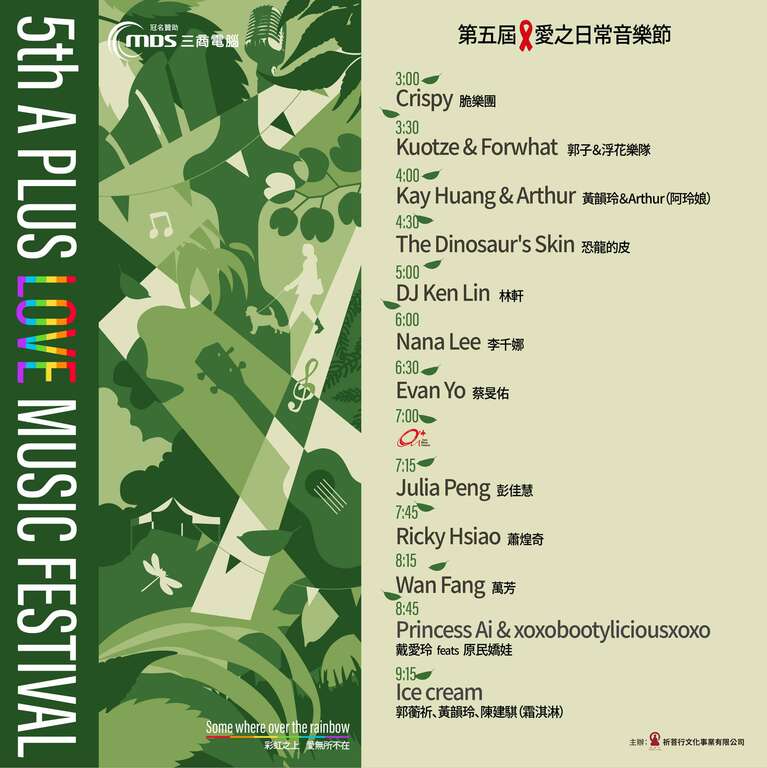 「第五届爱之日常音乐节」结合「基好生活节」,於11月18日在文心森林公园盛大登场,免费入场。