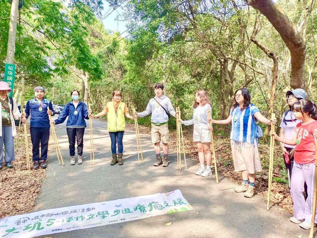 台中市政府观光旅游局「城市郊山探旅-我是登山王」系列活动热度持续延烧,继铁砧山场次吸引大批民众热情参与後,昨(19)日在大坑风景区推出全新主题「大坑5-1手作文学步道疗癒之旅」,特别邀请农业部林业及自然保育署认证的黄雪茹森林疗癒师,带领民众走进山林,体验一场充满疗癒感的旅程。