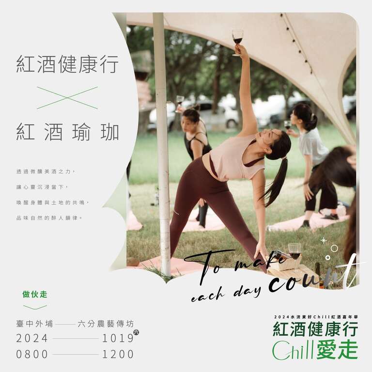 全台唯一「地酒瑜珈」体验,浅嚐在地酒庄葡萄酒的甘醇,透过微醺的美酒佳酿,打开感官感受身体深层呼吸、肌肉伸展、放松心灵!