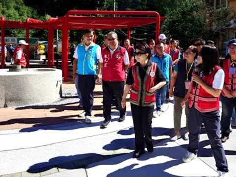 陈局长进一步说明,此次工程也针对细节进行优化。既有广场阶梯栏杆进行了除锈上漆处理,恢复其应有的防护与美观;排水系统也获得全面改善,有效解决积水问题;既有的抿石子地坪也进行改善,提升地面的行走安全性,减少滑倒的风险。透过这次的整修,谷关温泉泡脚广场不仅设施焕然一新,更展现市府对观光品质的坚持与用心。