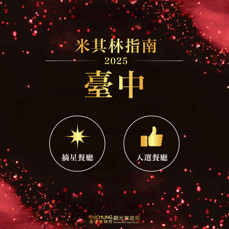 观光旅游局长陈美秀表示,从山陵到海滨,台中的味道来自土地的真诚馈赠,这里有丰富的天然资源,让最新鲜的食材以最短的距离抵达餐桌,职人们以巧妙的厨艺展现料理无限可能性及对游客的无限吸引力,将自然的鲜甜原封不动地端上每一道菜。摘星餐厅包括全球第一家米其林三星新加坡料理餐厅「JL Studio」;蝉联六届米其林一星的「盐之华」、「俺达的肉屋」,五届米其林一星的「涩」,两届米其林一星的「元纪」、「L'Atelier par Yao」,还有本市第一家受绿星肯定的「地坊」。料理人的精湛厨艺与卓越服务越来越受国际肯定,无论是追求创新飨宴、寻找异国风情、传承道地技艺,台中都能满足饕客的味蕾,展现这座城市兼容并蓄的饮食文化魅力。