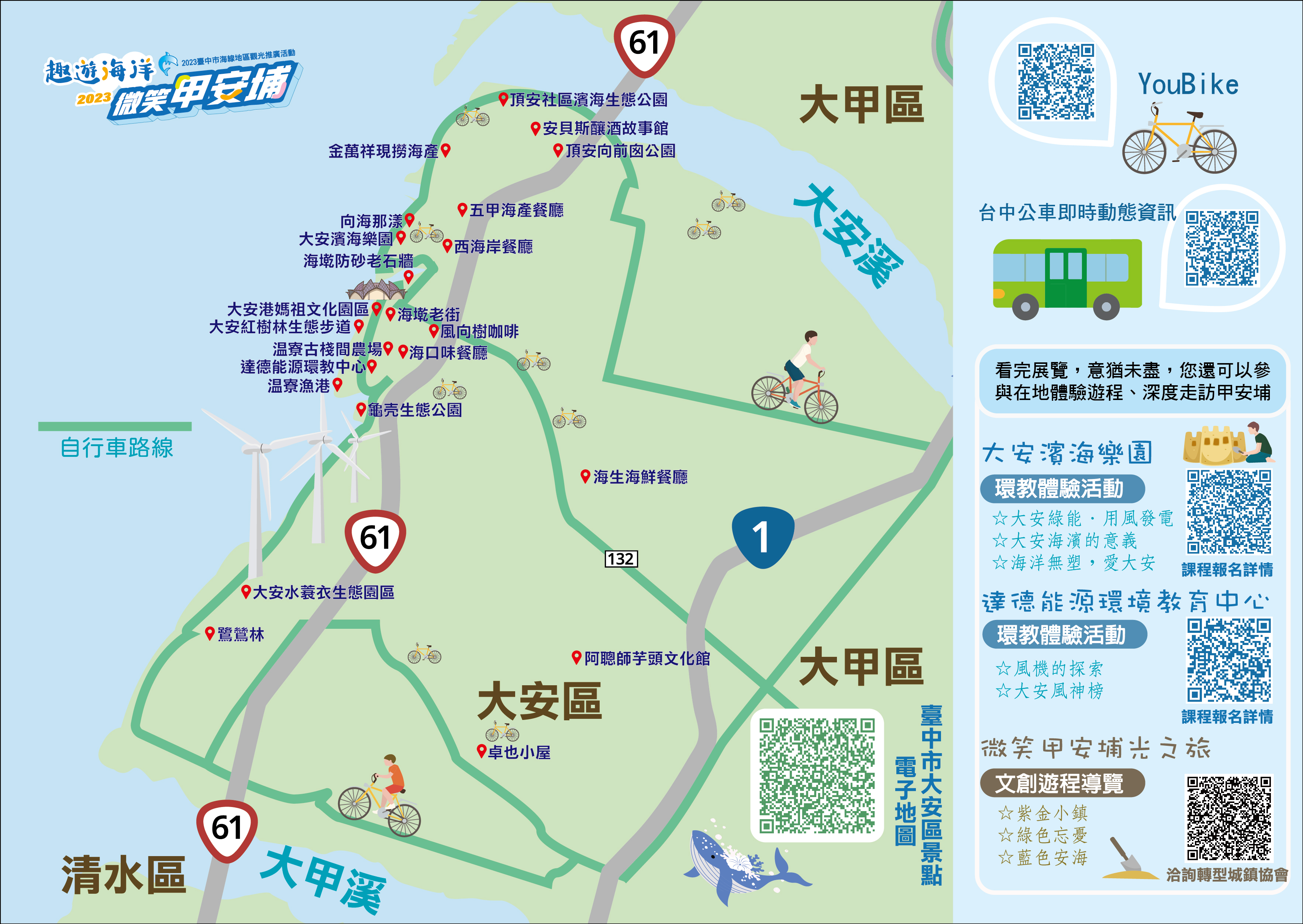 說明|結合自行車暢遊,在導覽老師帶領下,走讀大安濱海人文生態之美。