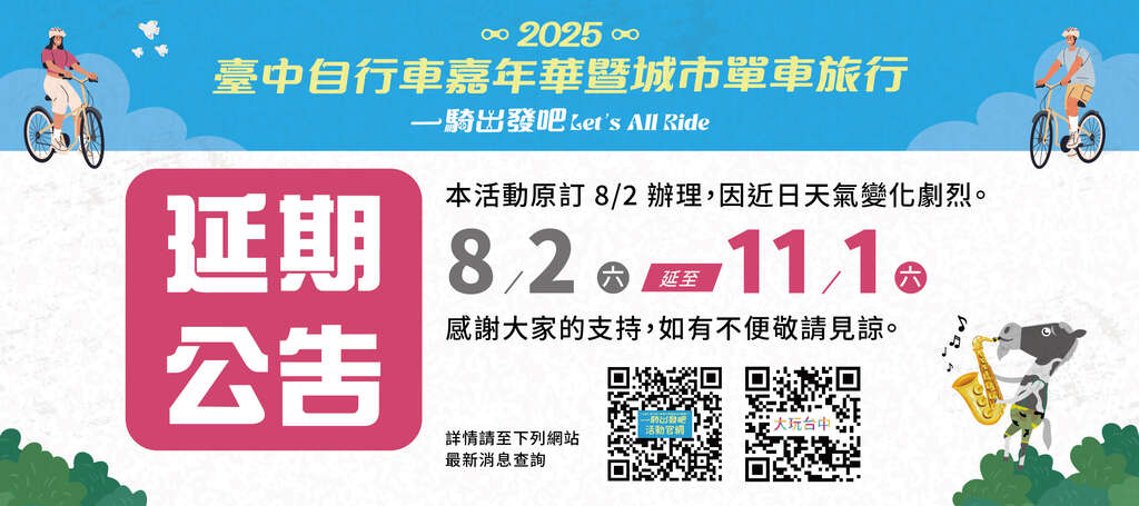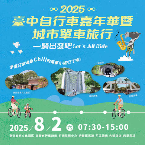還有趣味活動、精美好禮等你來解鎖~快揪團報名,用雙輪騎出臺中的慢活魅力吧!