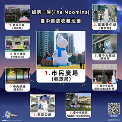 陳局長說明,近日有許多民眾分享這個冬天走在台中,最療癒的時刻就是看見姆明出現在城市街頭,除了台中市民廣場那隻21公尺高、全世界最大的「巨型姆明」,台中公園、高鐵台中站、火車站、台中捷運、台中陽明市政大樓、東區恊園好宅、中央球場、各區公所也都有姆明一族的可愛身影,城市新地標台中國際會展中心2月初將有另一隻巨型姆明驚喜現身,一起讓療癒系童話角色融入城市日常,也讓全城持續散發著「幸福蜜馬 台中MOOMIN ON!」的溫暖氛圍!