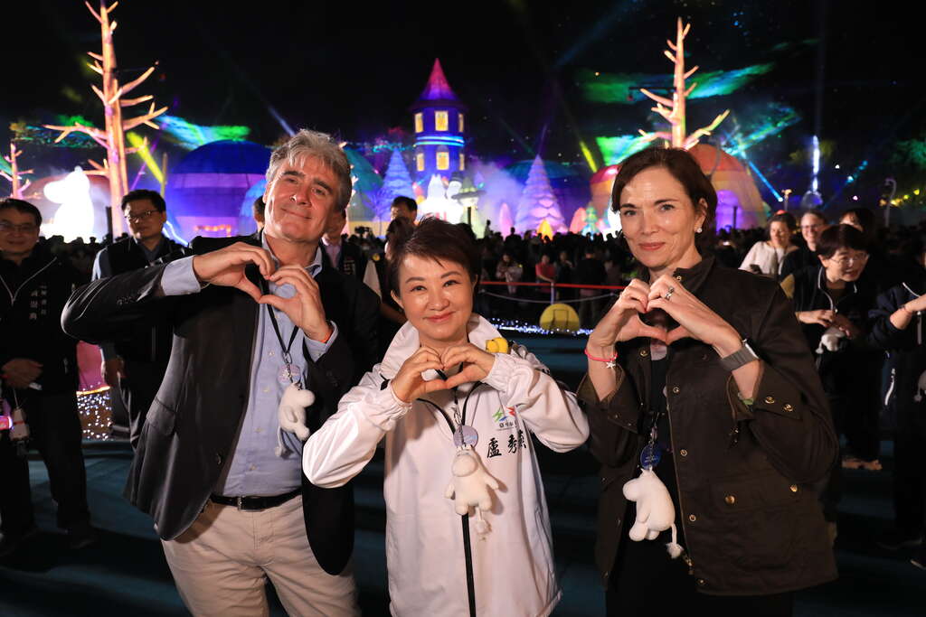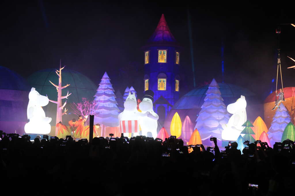 盧市長指出,台中多年來被評選為全台最幸福的城市,今年燈會主題IP特別邀請來自芬蘭、象徵幸福意象的姆明,盼藉由幸福城市與幸福國度的結合,帶給大家溫暖快樂。