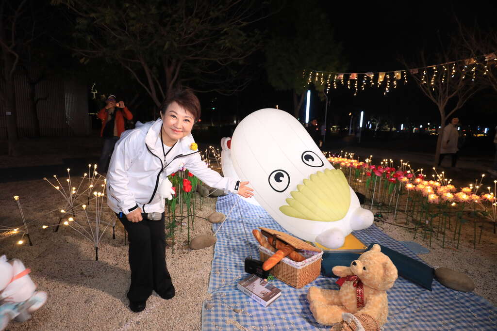 盧市長說明,今年燈會規劃七大燈區,融合科技、美學、傳統文化、故事與卡通元素,讓不同年齡層都能找到喜愛的內容。現場除賞燈外,也提供夜間野餐與休憩空間,讓民眾能與家人朋友一邊享用美食、一邊賞燈交流。