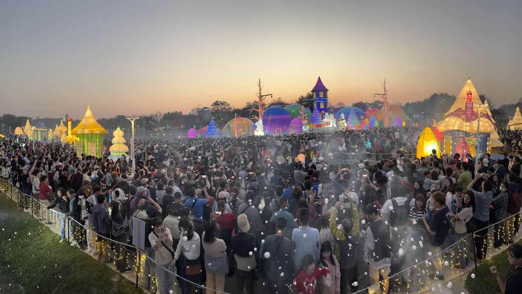 觀旅局長陳美秀表示,2026中台灣燈會以「幸福蜜馬 台中MOOMIN ON!」為主題,與Rights and Brands Asia (RBA) 旗下風靡全球80週年的「姆明一族(The Moomins)」跨界合作,於中央公園規劃主題展區,宛如歐洲童話小鎮的夢幻場景,過年期間吸引破百萬民眾造訪。除了開幕即爆紅的「極光下的姆明谷」與超大的「划船姆明」外,集聚8個姆明一族氣偶在野餐、看書、釣魚、修剪花草的「露營時光」展區熱度也持續升溫,尤其是歌妮身旁的那隻「熊馬吉」,現場觀察發現許多家長帶著孩子合照時,都會叮嚀:「拍完照要讓娃娃坐好喔,它是大家的!」甚至有民眾看到娃娃被風吹歪,還會順手幫它喬正,這種會心而笑的默契,都讓燈會現場充滿了既歡樂又溫馨的氛圍。