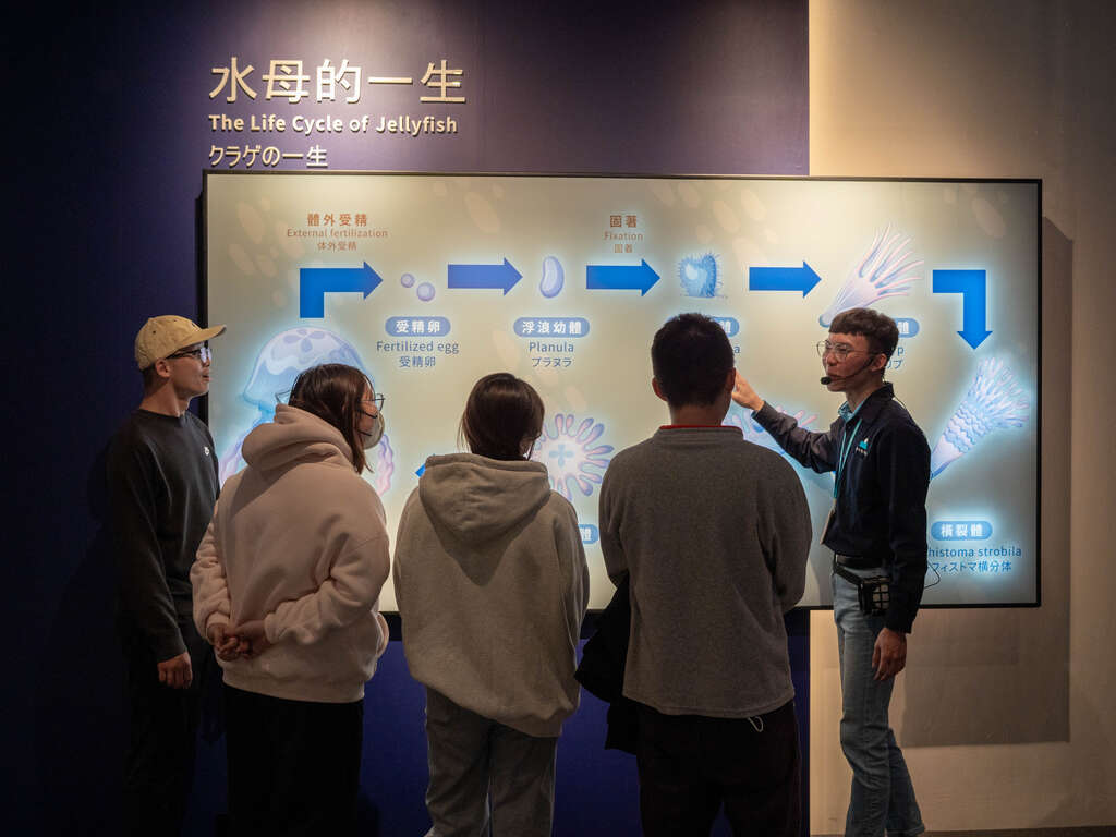 除此,館內也同步推出深度科普活動,透過「台灣白海豚導覽」解說導覽與「水母科教活動」,帶領大小朋友們一步步走進蔚藍秘密中:水母科教活動將帶領民眾深入了解水母不為人知的一面外,還有機會體驗水母Q軟有趣的觸感;而在2F白海豚區,台中海洋館將藉由解說及現場 QA 互動,深入了解「粉紅超跑」(白海豚)的生存現況。透過眾多精彩豐富的行程,邀請大小朋友與我們一同重新認識這片熟悉又陌生的藍色世界。