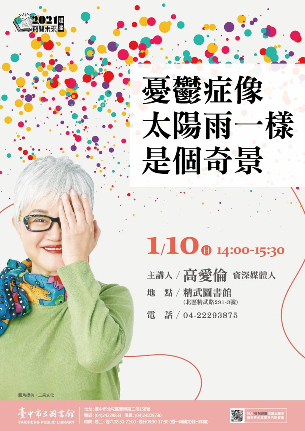 第二場講座邀請暢銷作家高愛倫,以「憂鬱症像太陽雨一樣是個奇景」為主題暖心分享,「不快樂」原來是可以說出來的事!