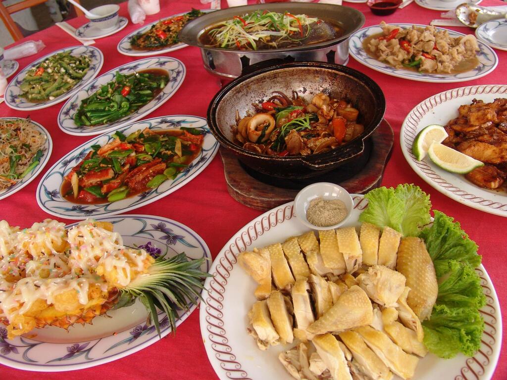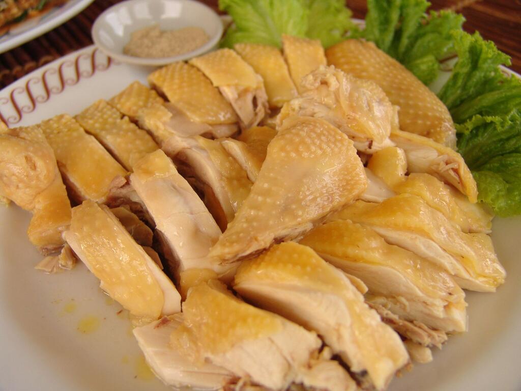 白斬鬥雞也是一道受歡迎的料理,餵食玉米及飼料的鬥雞,皮呈現一種淡淡的黃色,將雞肉放於開水中燙熟,作法單純,最能吃出鬥雞肉鮮美原味。超下飯的炒山豬肉、香濃美味炒大腸、溪蝦、爽口山蘇…搭配土雞料理,豐富又美味。