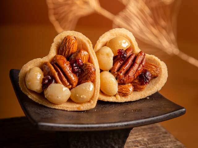 市場唯一心型塔皮,用料100%實在的心型堅果塔,特選夏威夷果仁、杏仁果、胡桃寶石級堅果,用酥脆塔皮裝載滿滿堅果,用心手工排豆,豐富滿載,再淋上不過於甜膩的北美楓糖漿,秉持不怕麻煩的態度,經過一一嚴謹的職人工序,讓每顆堅果充滿晶瑩剔透的質感,塔皮的奶香酥脆、楓糖堅果的甜蜜香脆,雙層次的脆讓人一吃就上癮。